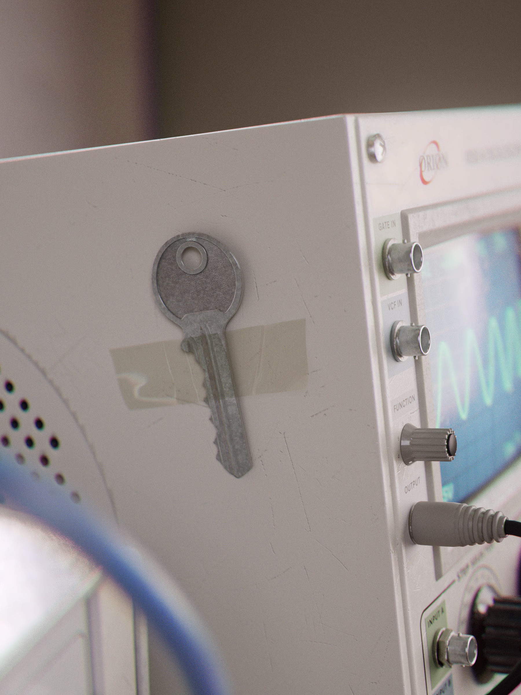 On the other side of the door an artifact rigged up to modified test equipment begins to swing, the still air fills with an unknown energy, gravity shifts, the equipment goes haywire.